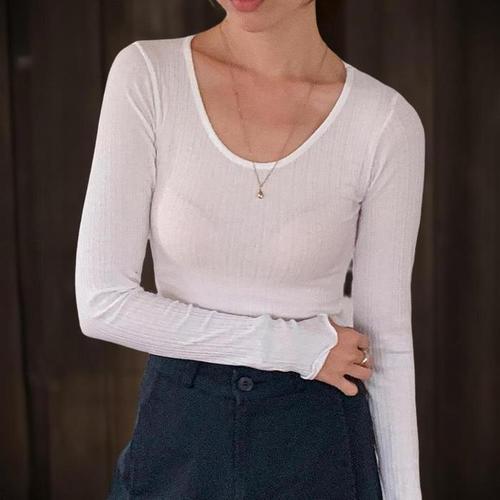 [신상오픈런]여자 무채색 골지 날라리 롱슬리브 슬림핏 이너 티셔츠 (41439063)