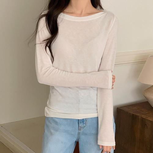 [셀러허브_여성트랜드패션]여자 롱슬리브 입술넥 이너티 쫀쫀스판 티셔츠