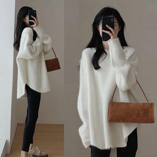 [하프클럽/]세련된 데일리 걸스 라이트하이넥 장팔 캐주얼 뜨개탑