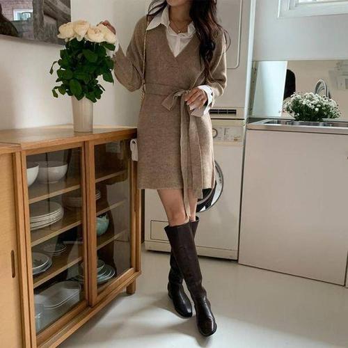 [에이치플러스몰]이리츠 롱니트 여성 트위드 휴양지 데님 허리