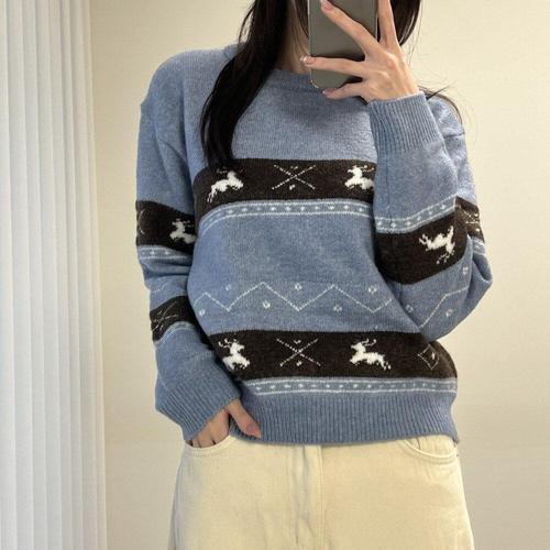 [옷자락]여자 크리스마스 노르딕 배색 자가드 겨울연말룩 니트