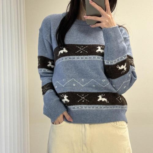 [옷자락] 여자 크리스마스 노르딕 배색 자가드 겨울연말룩 니트