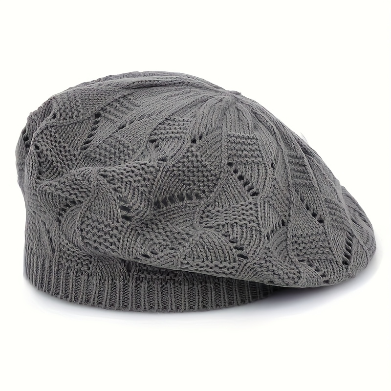TEMU 여성용 잎사귀 패턴 베레모 모자 - 가벼운 통기성 크로셰 디자인, 사계절 내내 신축성 있는 핏, 캐주얼 아웃도어 & 일상 시크 액세서리, 우아한 헤드피스