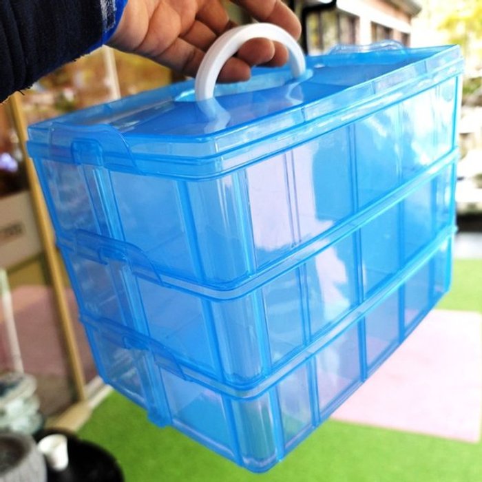 엄지척 블루 케이스 대형 플라스틱박스 부품 정리 장난감 3단