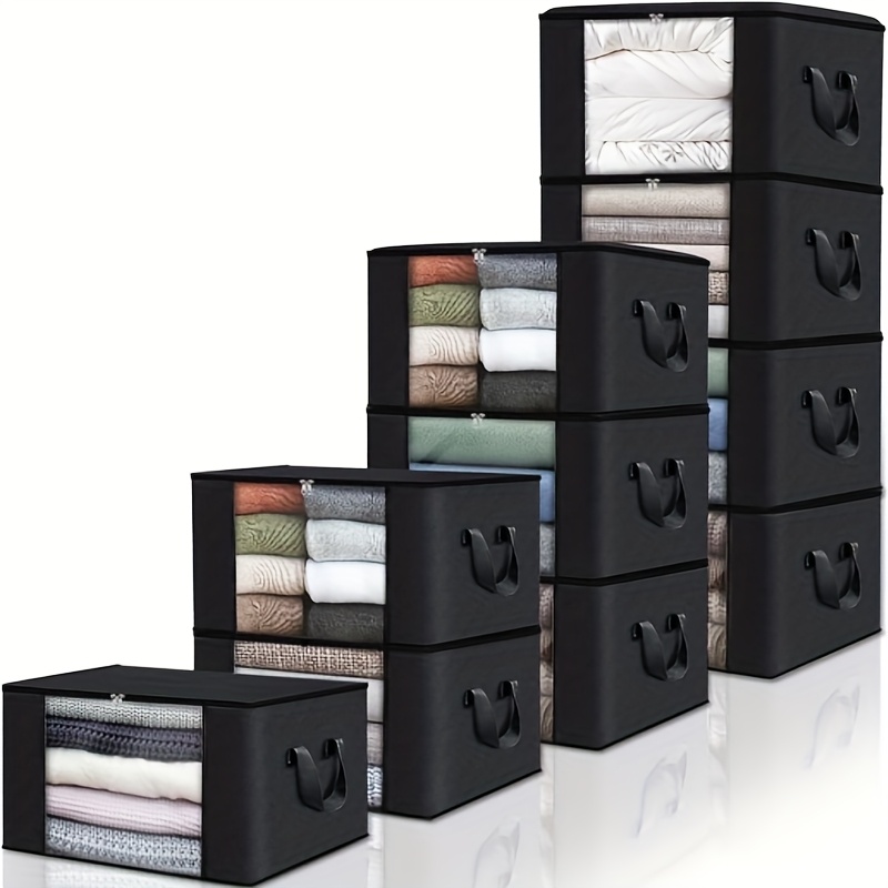TEMU 10개입 접이식 두꺼운 원단 담요 보관백 (손잡이 포함) - 침실, 옷장, 옷, 이불, 옷장 정리용, 블랙, 침대 밑 수납
