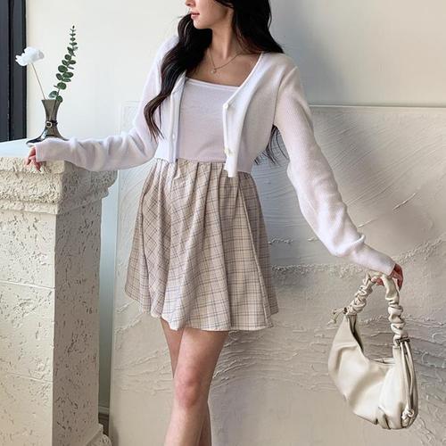 [신상오픈런]체크치마 훌스커트 봄개강룩 에이라인 이중 속바지 (31585868)