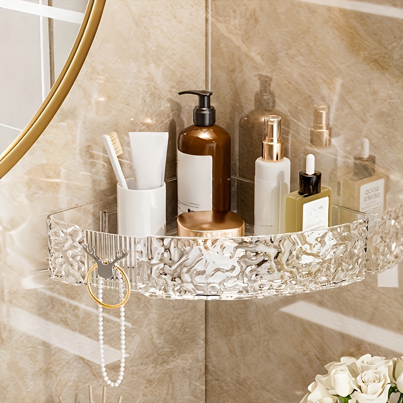 1개 투명 아크릴 벽걸이형 욕실 정리함 - 헤어 브러쉬, 빗, 세면도구용 드릴이 없는 보관함 - 공간 절약형