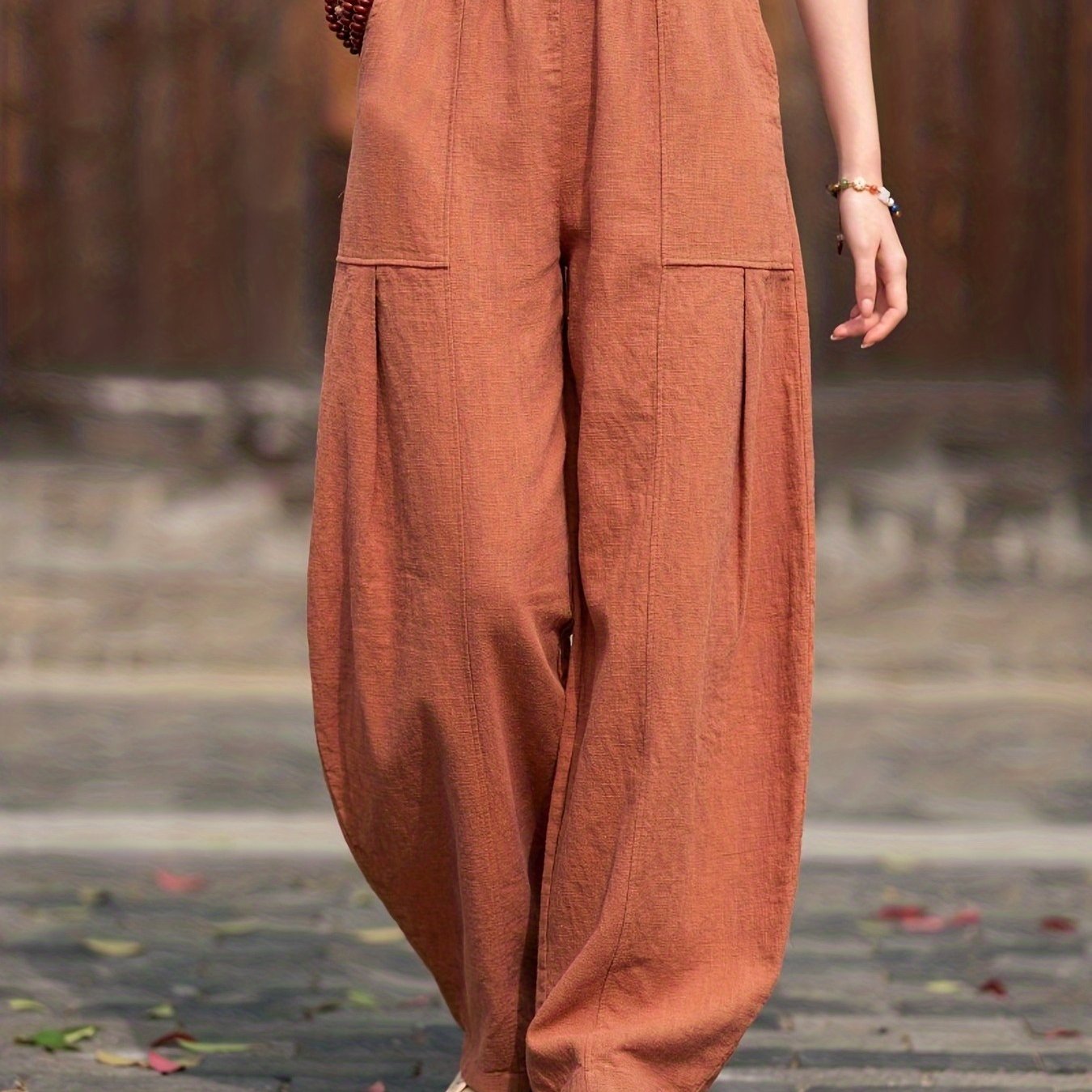 TEMU 여성용 우아한 단색 와이드 레그 팬츠, 캐주얼 루즈 트라우저, 직장 및 외출에 적합