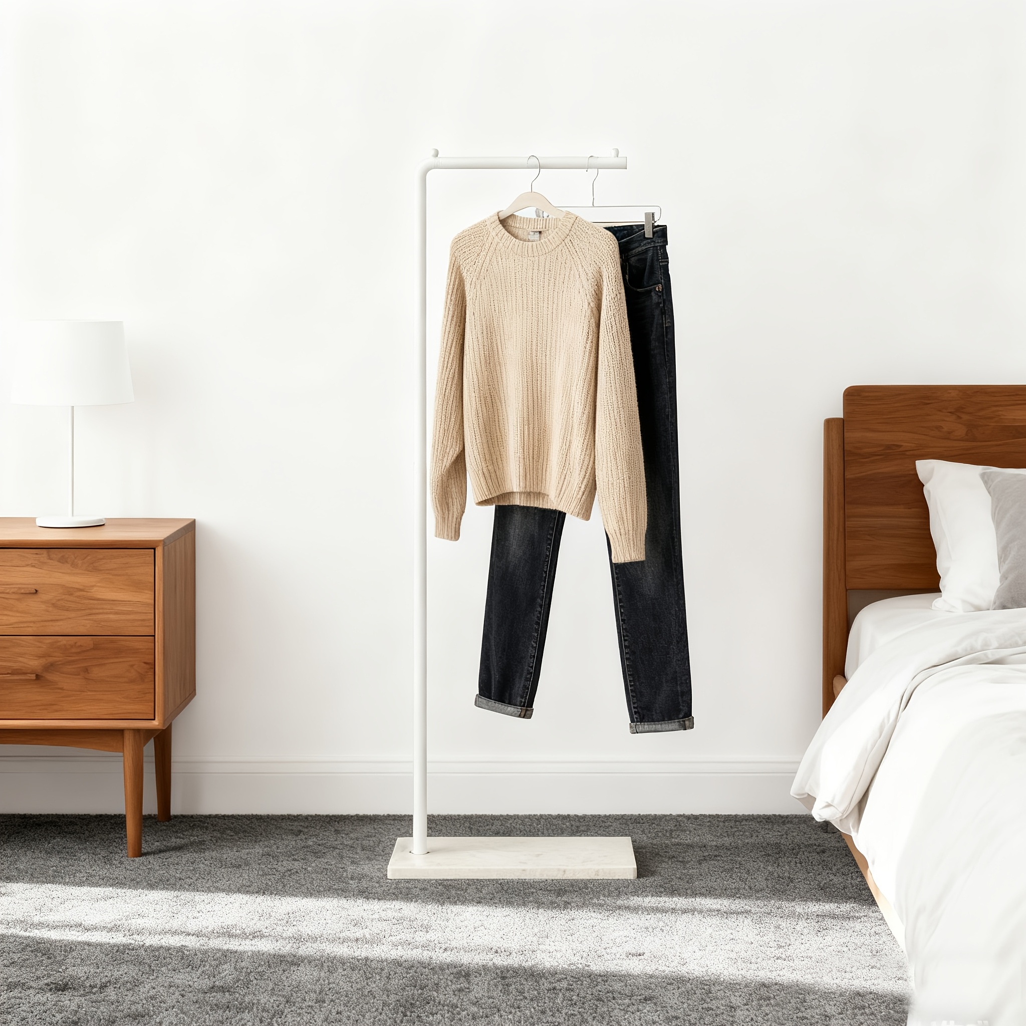 TEMU 노르딕 스타일 L자형 바닥 걸이, 스칸디나비아 스타일 옷걸이 (선반 포함), 현대적인 재킷 및 모자 걸이, 침실 공간 절약형 정리대, L자형 코너 옷걸이|스탠드옷걸이