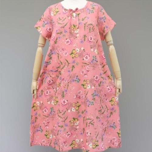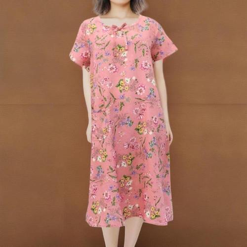 [신상오픈런]여성용 여름 인견 꽃 패턴 반팔 롱 드레스 홈웨어 잠옷