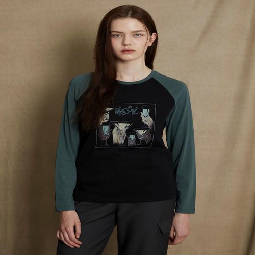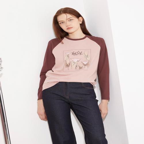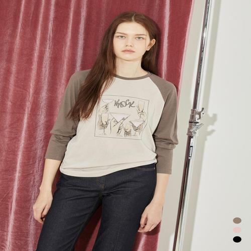 [데일리스트][세정_인디안여성복]/2025가을신상/배색 프린트 티셔츠MDEAL5F7351_GM