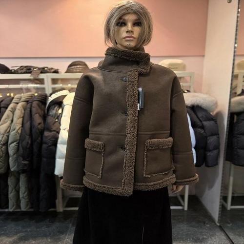 [시슬리]넥 버클 집업 인조 무스탕 (SALE35461 블랙,다크브라운)