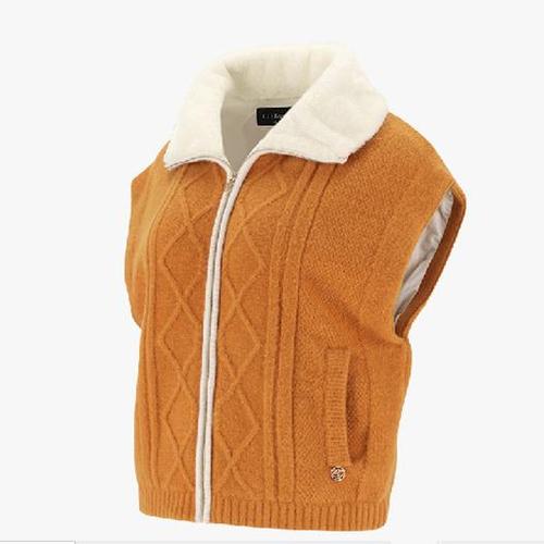 [엘르골프]여성 인조 퍼 배색 풀 오픈 니트 베스트 6K-83101-150_US