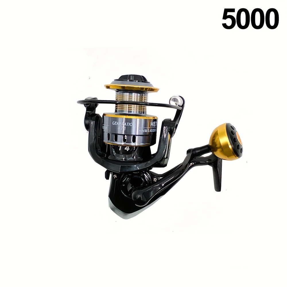 TEMU [실버 골드 라이트 럭셔리 컬러 스킴] 낚시 릴 2000-7000 타입 옵션 풀 메탈 구성 미국 스타일 메탈 로커 암 구형 메탈 그립 메탈 스풀 강력한 나일론 풋 시트 5.2:1 기어비 양손잡이 교체 가능 앤티 세이프