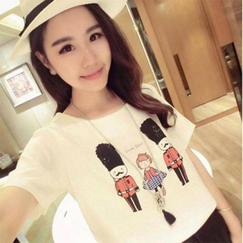 [에이치플러스몰]여자 일러스트 캐주얼 반팔 티셔츠 필수템 패턴 여성