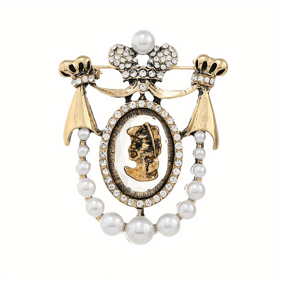 TEMU 빈티지 바로크 궁정 보석 - 여성용 우아한 꽃과 비즈 디자인 브로치, 장식된 금색 프레임, 코트, 코르사지, 선물에 완벽, 빈티지 보석, 장식된 공예