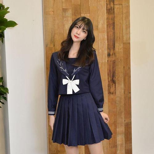 [셀러허브_여성트랜드패션]긴팔 세라복 일본교복 세트(네이비)