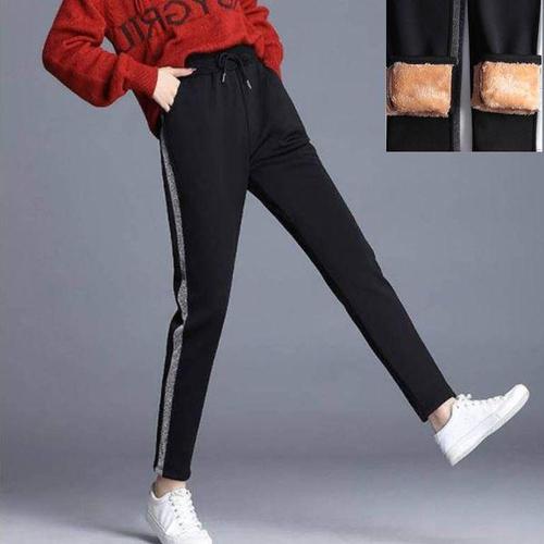 TEMU 1개 여성용 보온 겨울 바지 - 체육관, 러닝, 일상복용 스트레치 없는 원단의 드로스트링 허리, 사이드 포켓이 있는 레그 디자인 - 가을/겨울 여성용 바지 (캐주얼 & 정장 스타일), 내구성 있는 아웃도어 웨어, 러닝 타이츠, 클래식 스타일, 따뜻한 안감, 피트니스 애호가를 위한 겨울 옷, 플리스 안감 바지