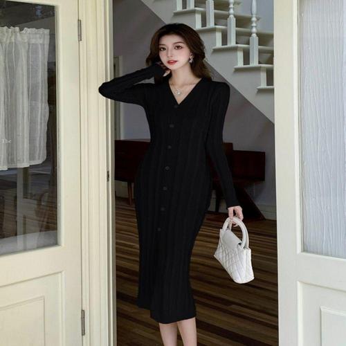 [셀럽하우스]골지 LXTB2121 니트 목폴라 슬림 일자핏 롱 원피스