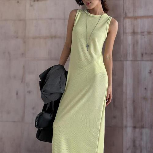 [신상오픈런]여성 민소매 여름 원피스 일자핏 파스텔 컬러 롱드레스 (34705543)