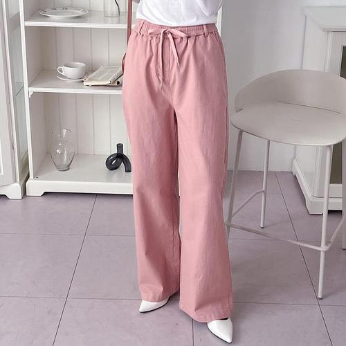 [JED] 일자 블루 와이드 밴딩 팬츠 린넨 1P 얇은 여름 면바지 통바지