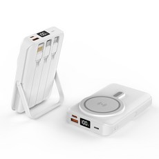 THOUSTA 맥세이프 고속 무선충전 대용량 케이블 일체형 호환 보조배터리 20000mAh, 1개, 화이트