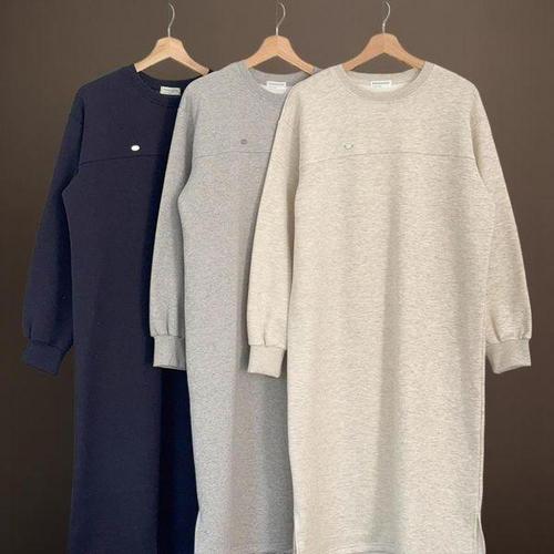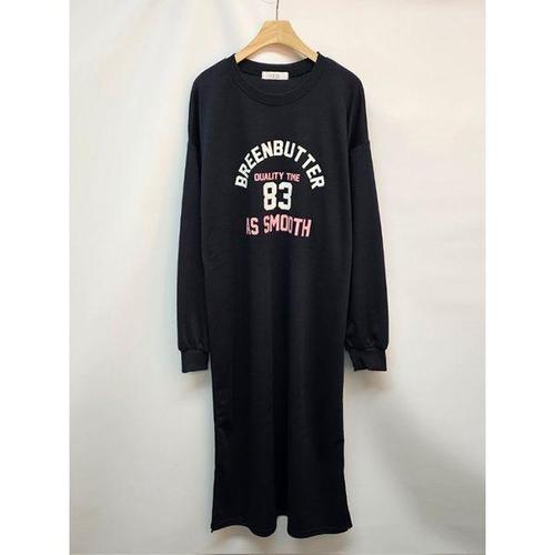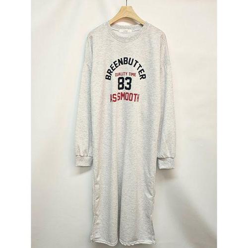 상상그이상 여성용 국내제작 기모 오버핏 베이스볼 레터링 포인트 롱원피스 캐주얼 마실룩 홈웨어룩