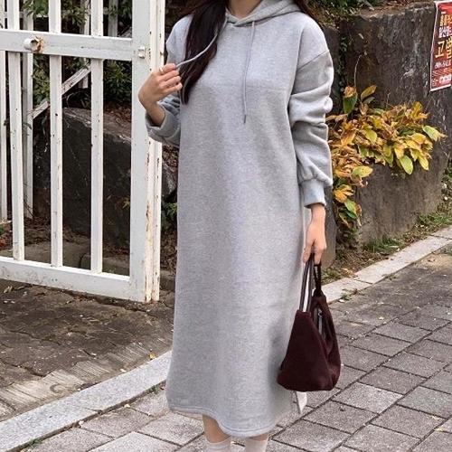 [문에이블]문에이블 겨울 여자 여성 기모 후드 빅사이즈 루즈핏 임산부 데일리 롱 원피스