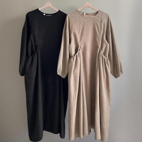 [신상오픈런]여성용 셔링 포켓 퍼프 임산부 겨울 롱 드레스 가을 원피스 (42003968)