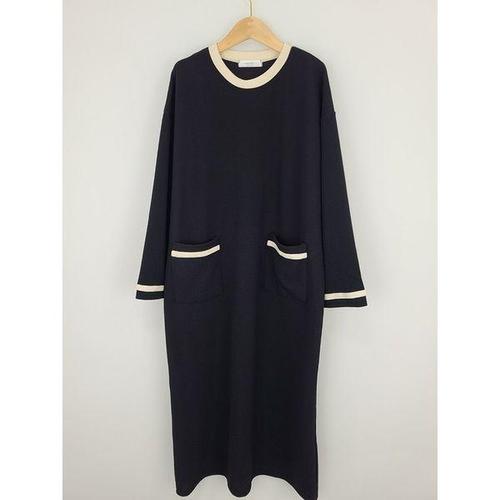 [샵앤]국산 여성 포켓배색 임부 롱원피스 LL-WDR-4848-네이비