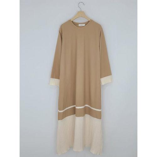 [샵앤]국산 여성 배색주름 임부 롱원피스 LL-WDR-4852-베이지