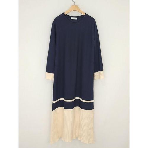 [샵앤]국산 여성 배색주름 임부 롱원피스 LL-WDR-4852-네이비
