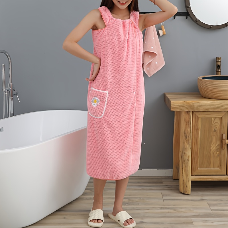 TEMU 1pc 성인용 웨어러블 목욕 타월, 포켓과 버튼이 있는 빠른 건조 스파 랩 타월, 웨어러블 목욕 치마, 집 욕실용 흡수성 목욕 랩 타월, 목욕 용품, 욕실 용품, 여성용 사우나 킬트 스파 사우나 랩