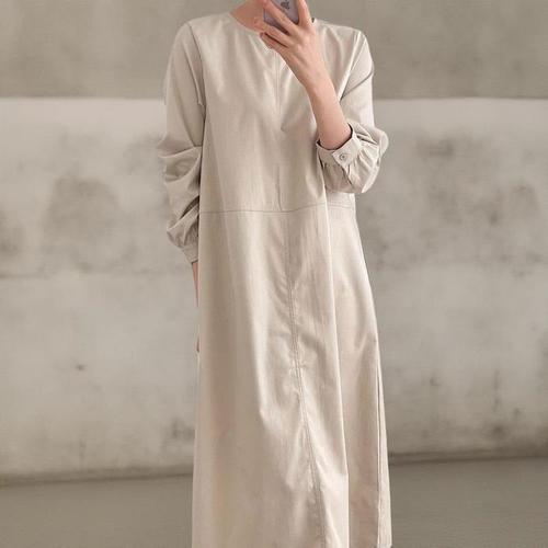 [신상오픈런]가을 임산부 패션 77사이즈 박시 롱 원피스 등원룩 여성용 절개 디자인 (41218899)