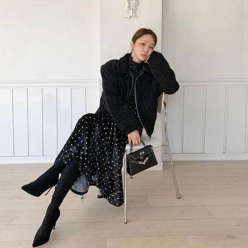 [에이치플러스몰]롱 롱스커트 머메이드 새틴스커트 도트 머메이드
