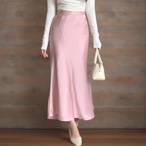 [신상오픈런]여성 새틴 머메이드 롱 스커트 뒷밴딩 클래식 스타일