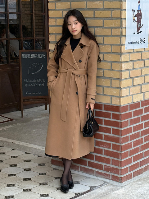 TEMU 여성용 우아한 롱 코트 - 벨트 허리, 시크한 오피스부터 파티까지 겸용, 가을/겨울용 논스트레치 원단, 여성용 우아한 포멀 & 데일리 아우터, 여성 겨울 코트