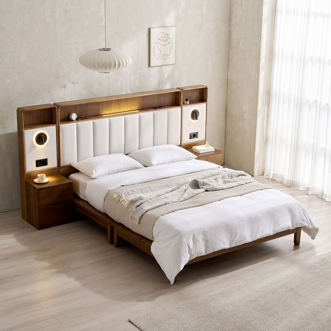 누오보 LED 원목 통깔판 침대프레임 Q/K 겸용