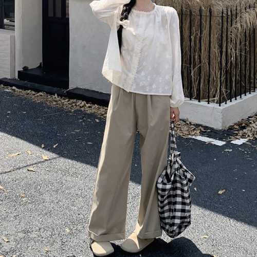 퀸이즈 여성용 카라넥 플라워 자수 블라우스