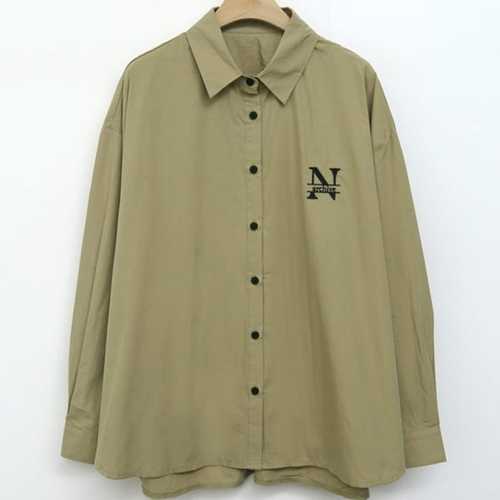 옷자락 / 여성 클래식 코튼 자수 오버사이즈 셔츠 남성용 무지