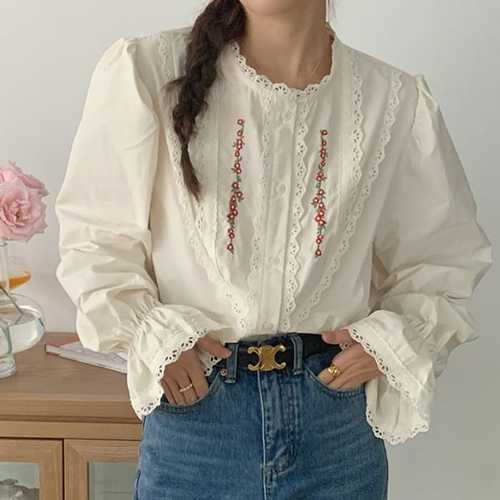 [패션시그널] 자수 코튼 레이스카라 셔츠 FS004456