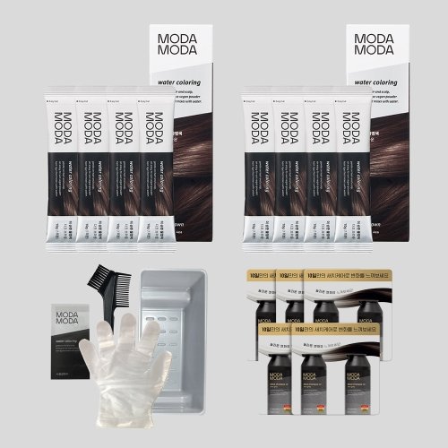 (1+1)모다모다 더 순한 물 염색 염색약 4매입(총 8매입) 블랙 / 다크브라운 + 10일샤쉐