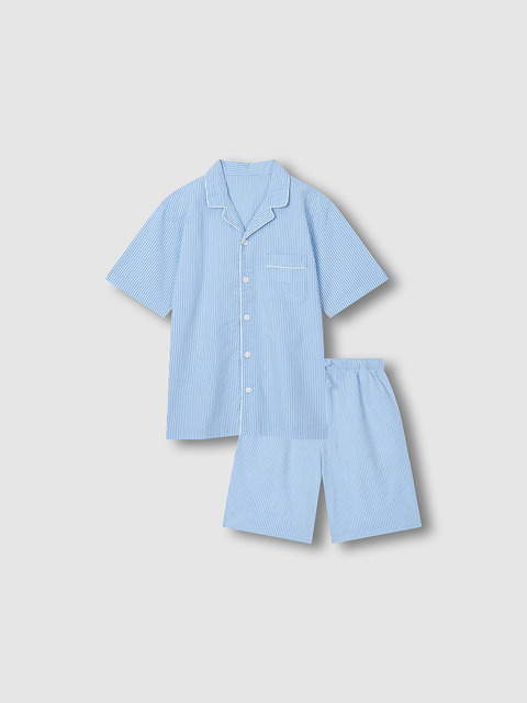 [자주 라이프웨어] [JAJU/자주] 남 시어서커 5부 파자마 세트_라이트 네이비