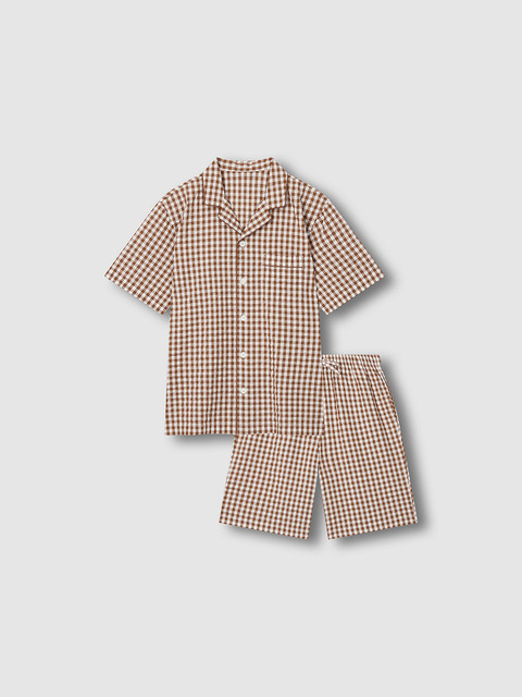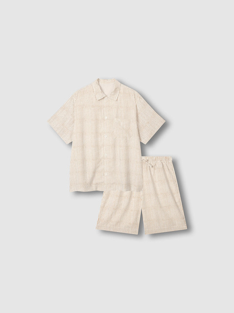 [자주 라이프웨어] [JAJU/자주] 남 시어서커 5부 파자마 세트_라이트브라운