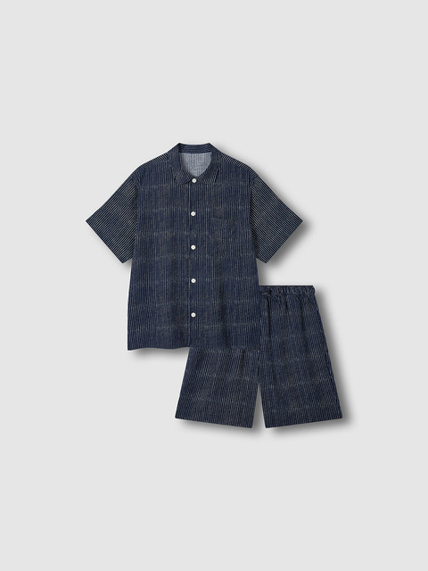 [자주 라이프웨어] [JAJU/자주] 남 시어서커 5부 파자마 세트_다크 블루
