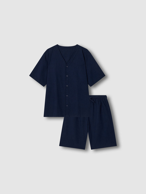 [자주 라이프웨어] [JAJU/자주] 남 시어서커 브이넥 5부 파자마 세트_네이비