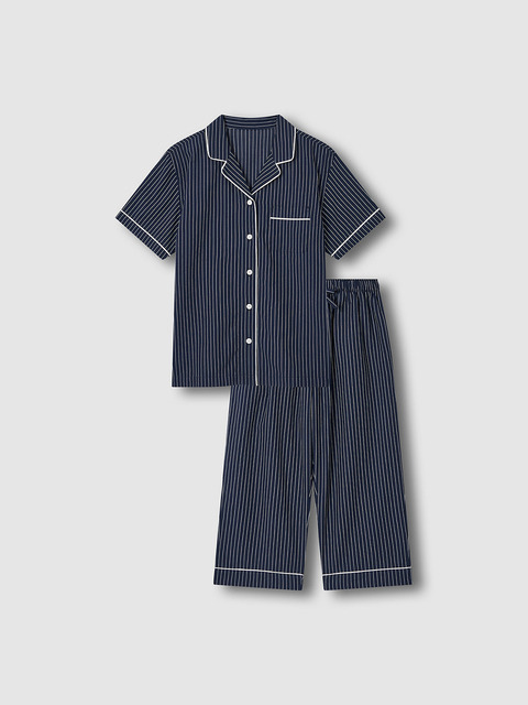 [자주 라이프웨어] [JAJU/자주] 여 시어서커 5부 파자마 세트_다크 블루