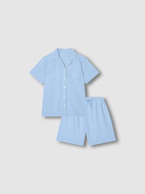 [자주 라이프웨어] [JAJU/자주] 여 시어서커 5부 파자마 세트_라이트 네이비
