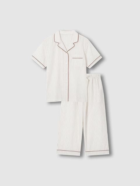 [자주 라이프웨어] [JAJU/자주] 여 라이트 코튼 7부 파자마 세트_라이트브라운
