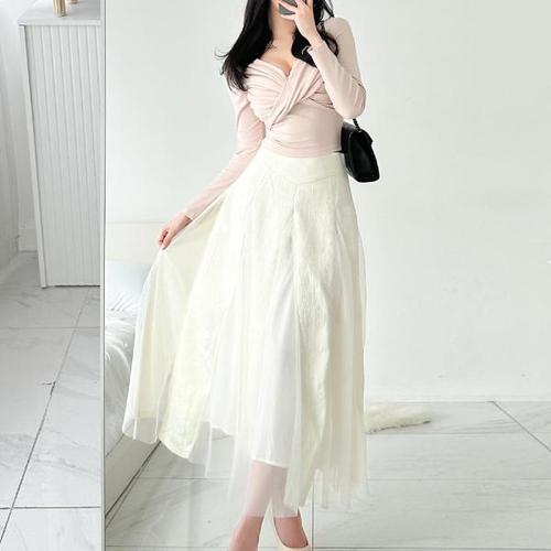 [미라클세븐][M7] 여자 자가드 발레코어 컷아웃 레이스 롱스커트